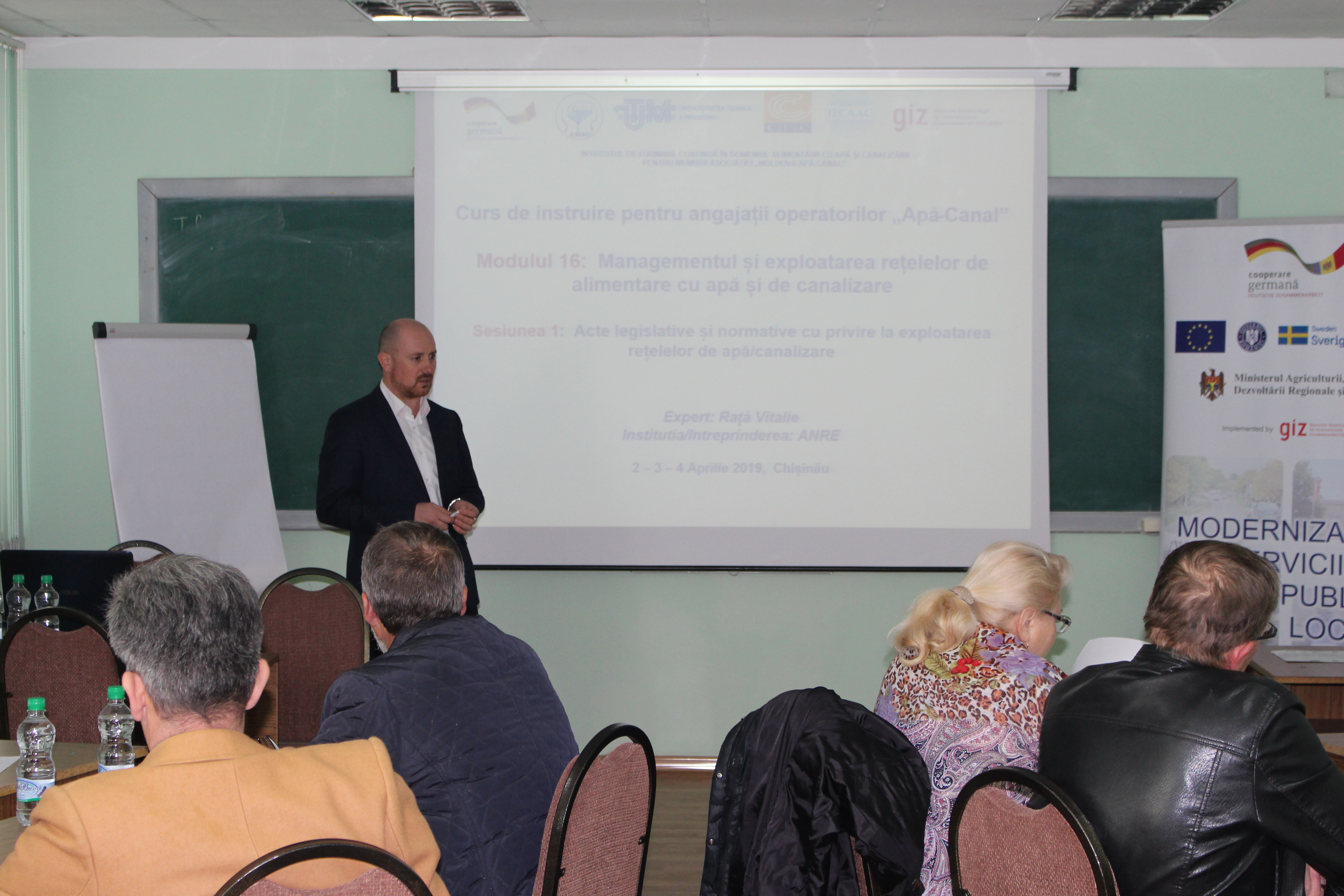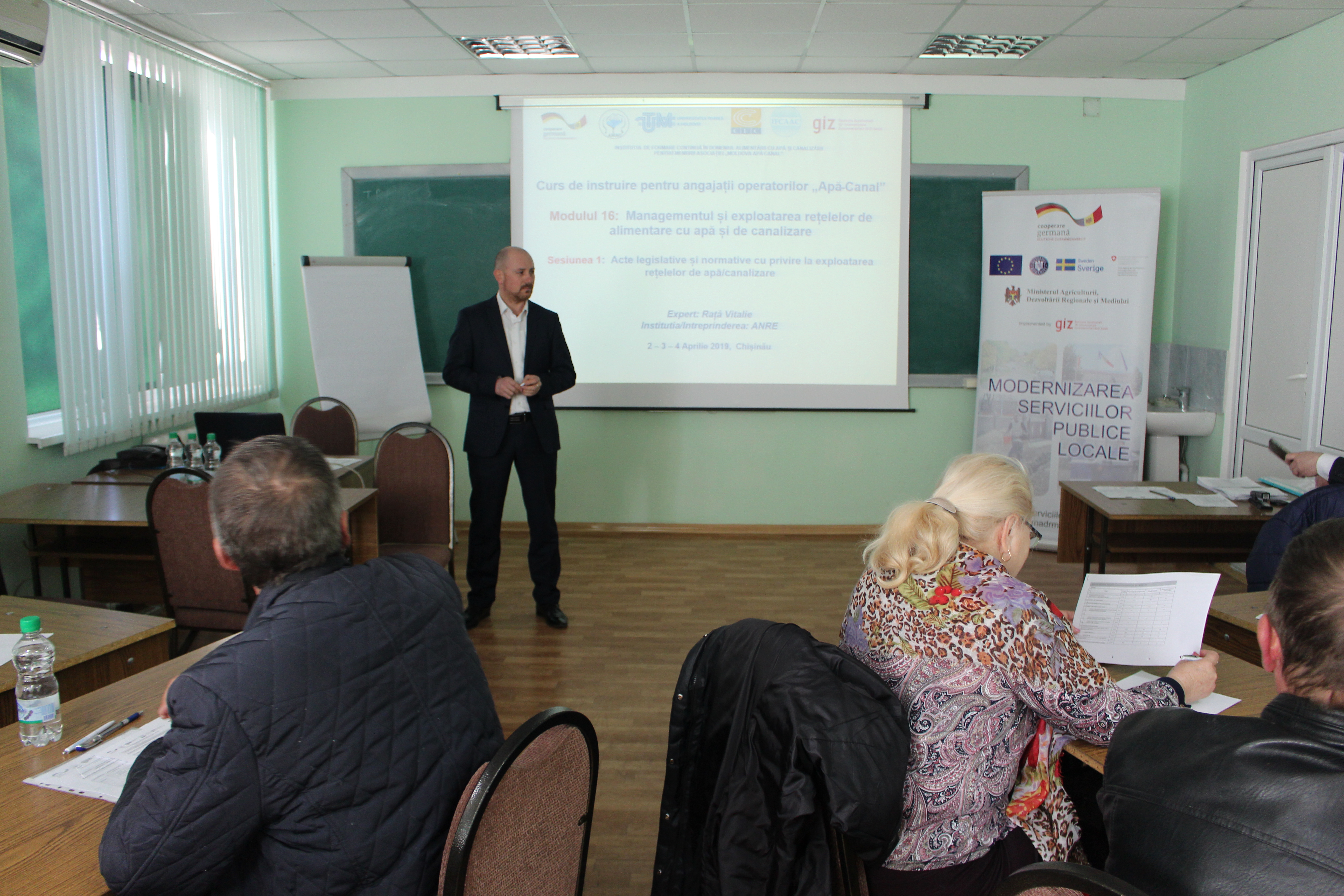 În perioada 02 – 04 aprilie 2019, în cadrul Programului Național de Creștere a Capacităților Operatorilor din domeniul Aprovizionării cu Apă și Canalizării, specialiștii din cadrul operatorilor serviciilor de alimentare cu apă și de canalizare, și anume șefii serviciilor  de exploatare a rețelelor de apă, șefii serviciilor de exploatare a rețelelor de canalizare și maiștrii, au participat la cursul de instruire cu genericul: Managementul și exploatarea rețelelor de apeduct și de canalizare. Grupul 1 (limba română).